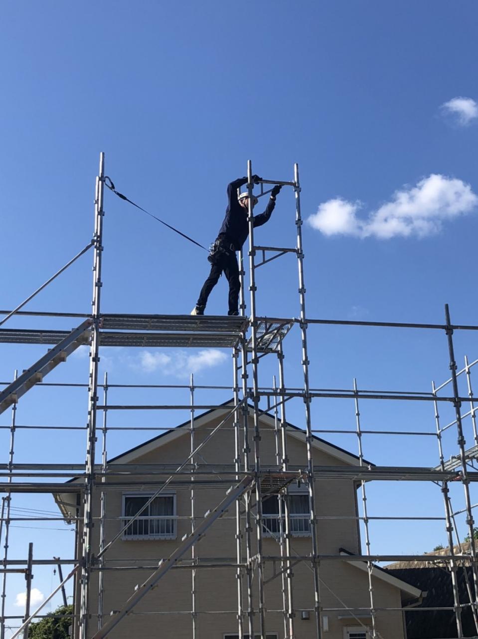 足場施工完了です。 安全性を重視、安全帯を徹底し作業を行ってす。これからも弊社HPをご覧下さい😊